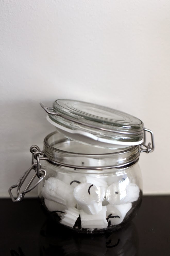 Talvella tulee poltettua kasapäin kynttilöitä. Pätkät on säilötty (en todellakaan tiedä miksi) lasipurkkiin. Muita talven iloja on erilaisten maustettujen kahvien juonti. Olen haaveillut myös kapselikeittimestä, mutta taitaa olla että perinteisellä espressopannulla keitetty tiukempi espresso ja siitä tehty latte sekä hyvä suodatinkahvi riittävät kuitenkin meidän talouden kahvihetkiin.